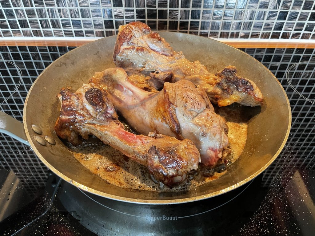 For å få et perfekt måltid så må man ha en god saus, og da må man ha kraft. Jeg var en gang på Vianvang hos Arne Brimi på kurs, og da fikk han følgende spørsmål om forutsetningene for å lage god saus: «hva er alternativet til kraft?». Arne brukte kun kort tid før han svarte: «Det er ikke noe alternativ». For egen del så har jeg gjennom mange år levd etter akkurat det – jeg må ha kraft. Her koker jeg kraft på det bein etter at jeg har beina ut lammelåret. Men har jeg ikke det så er jeg litt raus med å «skjære til» kjøtt/fisk slik at jeg får litt avskjær for å lage kraft på. Lammelåret vil naturligvis gi litt kraft i langpanna også, men lager du til en stor flokk så må man ha litt kraft. Hvis du ikke kan/vil/har tid til å beine ut selv – kjøp den ferdig utbeina og be om å få med beina hjem.